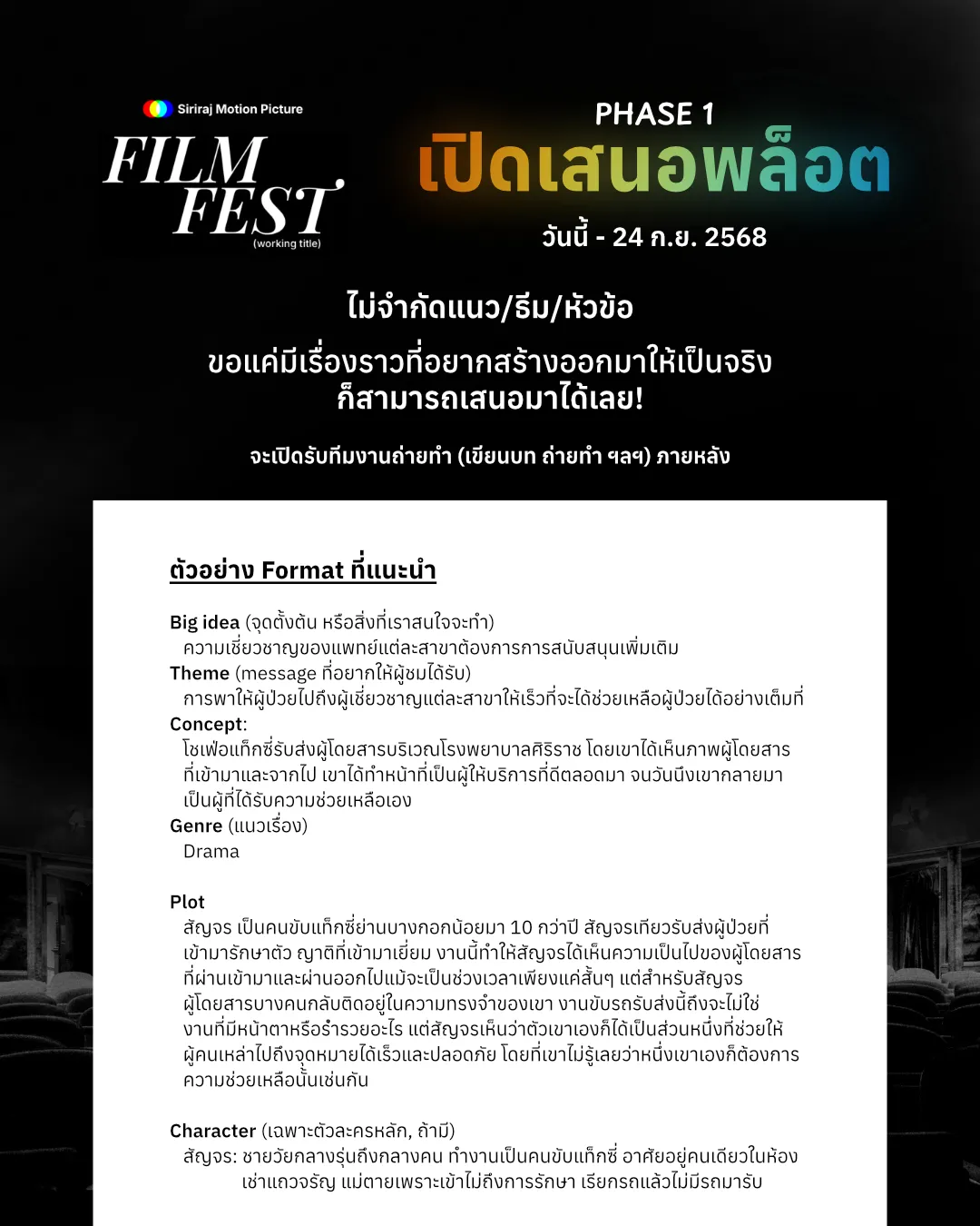 Project ใหญ่เบิ้มของชมรม Siriraj Motion Picture ประจำปี 2025 ที่จะเปิดโอกาสให้ผู้ที่สนใจผลิตภาพยนตร์สั้นเพื่อฉายในงาน Art Space 2025 ช่วงต้นปีหน้า!!